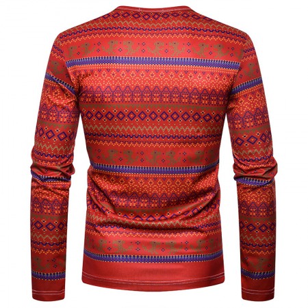 New Style Men's Fashion 3D Digital Printing Long-Sleeved Round Neck T-Shirt