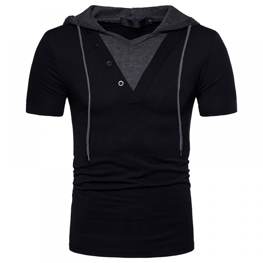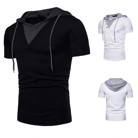 New Design Men's European Size Hooded Short-Sleeved T-Shirt