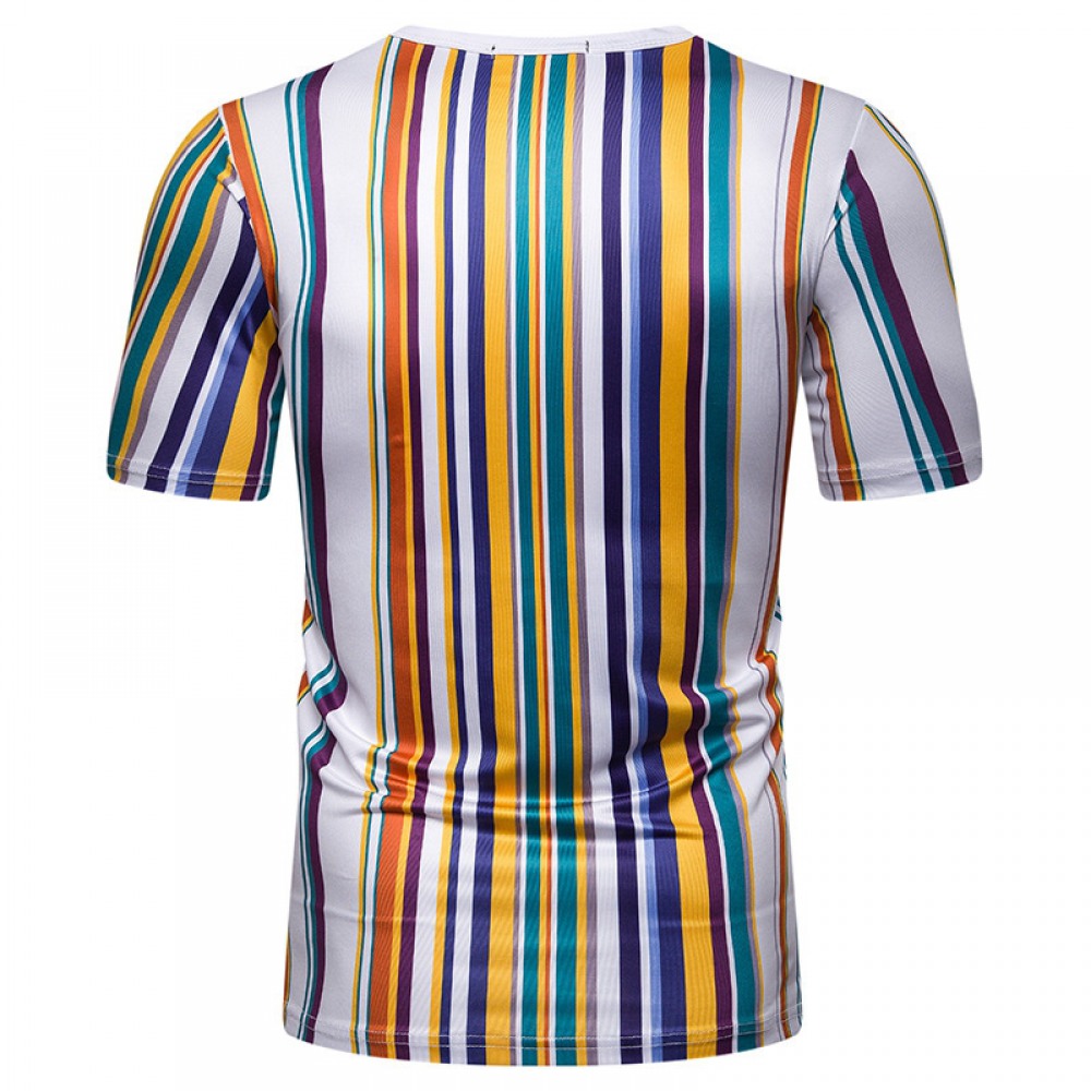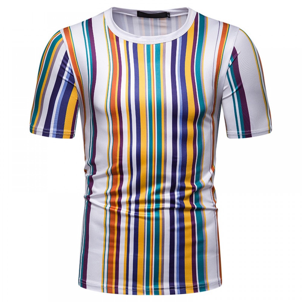 New Summer Men's Short-Sleeved T-Shirt Men's Contrast Striped Slim Casual T-Shirt